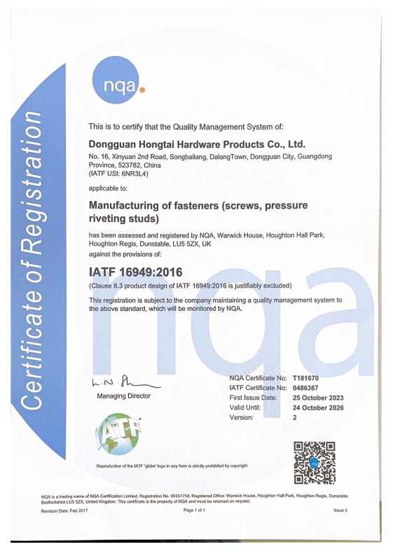 東莞市紅泰五金制品有限公司,公司占地六千多平方米,擁有五十多組螺絲機(jī)及六十臺(tái)自動(dòng)車(chē)床設(shè)備。是一家專業(yè)設(shè)計(jì)、生產(chǎn)ISO、DIN、GB、JIS、ANSI、BS及客戶指定特殊要求的高精密五金緊固件的制造企業(yè)。